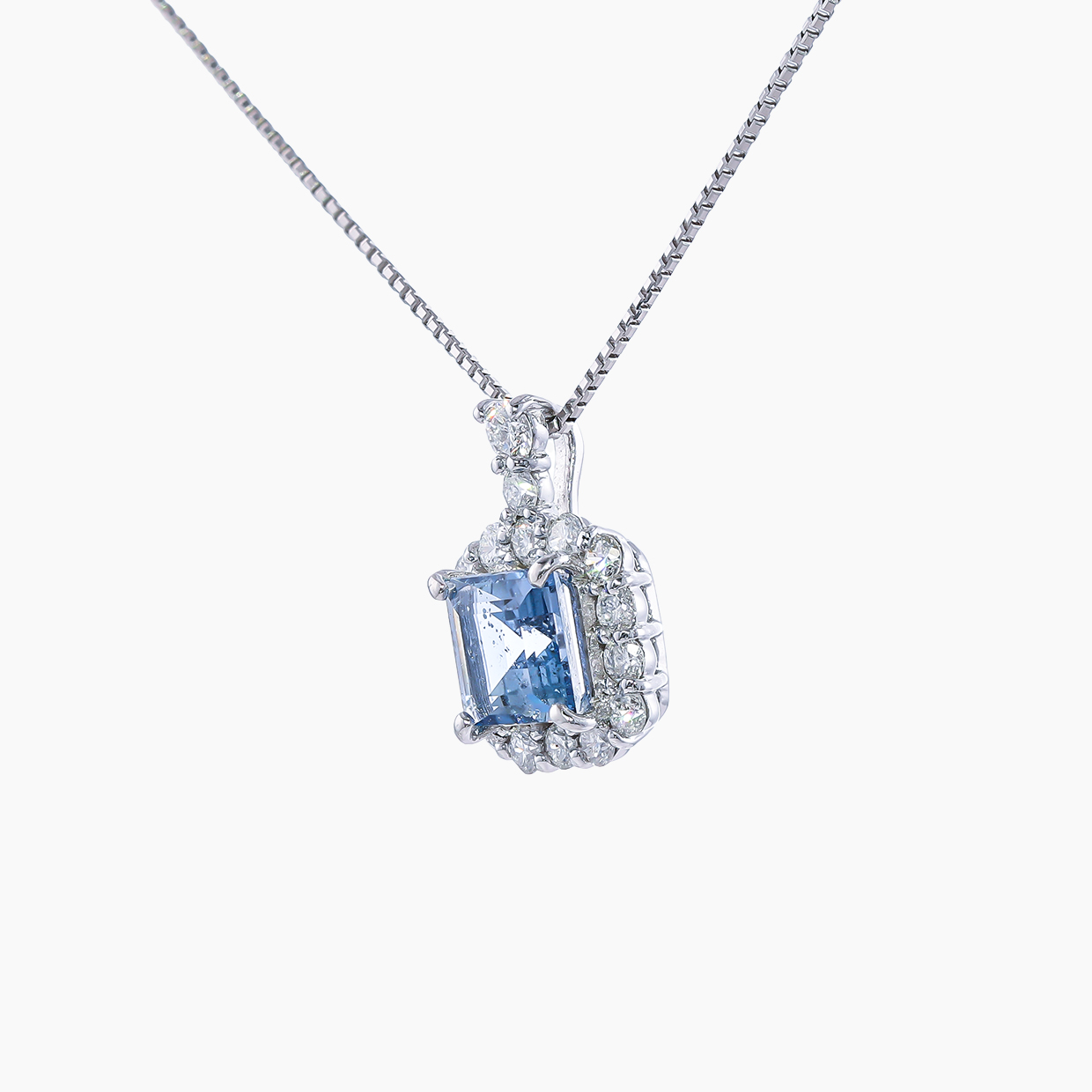 澄み渡る海を閉じ込めたかのように、透明感あふれるアクアマリンが胸元で静かに輝きます。0.491カラットのスクエアカットは、まるで波間に差し込む光を思わせ、清らかな気品を漂わせます。その周囲を取り巻くダイヤモンドのきらめきは、水面に映る星々のようにアクアマリンの青をよりいっそう際立たせ、深い安らぎと華やぎを同時に纏わせています。優雅なデザインと端正な輝きが織りなすこのペンダントは、日常に凛とした美しさを添え、身につける人の内なる輝きを引き出してくれるでしょう。