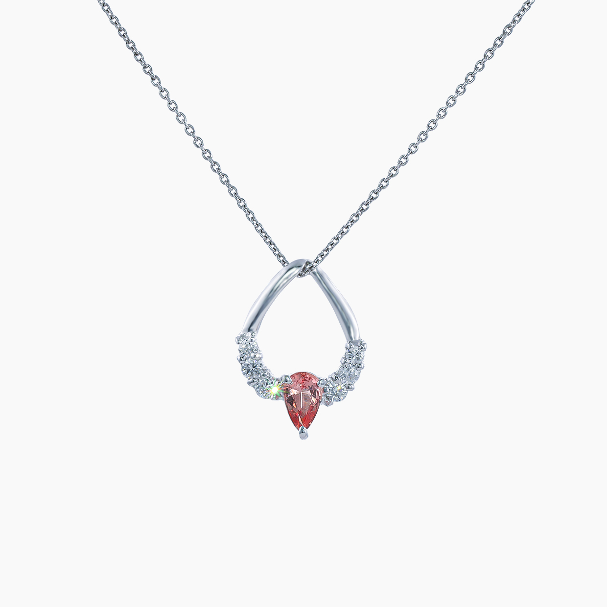 サファイアの王女と称される「パパラチア」。その名を冠することが許されるのは、ピンクとオレンジが溶け合った、ごくわずかな色調のものだけです。本品は、今や市場でも非常に貴重な、パパラチアらしい正統な中間色をしっかりと宿した逸品です。朝露に濡れる蓮の花びらのような、潤いを湛えたピンクと柔らかなオレンジ。二つの色が溶け合う0.46ctのパパラチアサファイアは、光を受けるたびに甘美で上品な表情を映し出します。プラチナの優美なラインが石を包み込むモダンなシルエットに、0.23ctのダイヤモンドが寄り添い、主役の色彩をより気高く引き立てます。肌に馴染みながらも、胸元で確かな存在感を放つこの色彩は、着ける方の知性と優しさを象徴するかのよう。移ろう光の中で刻々と表情を変える、唯一無二の「蓮の花の色」をぜひお手元でご堪能ください。