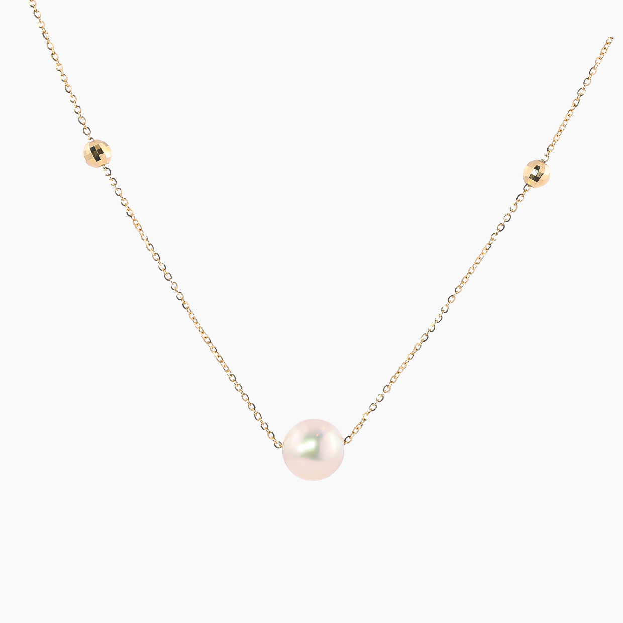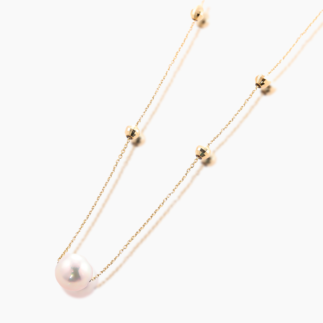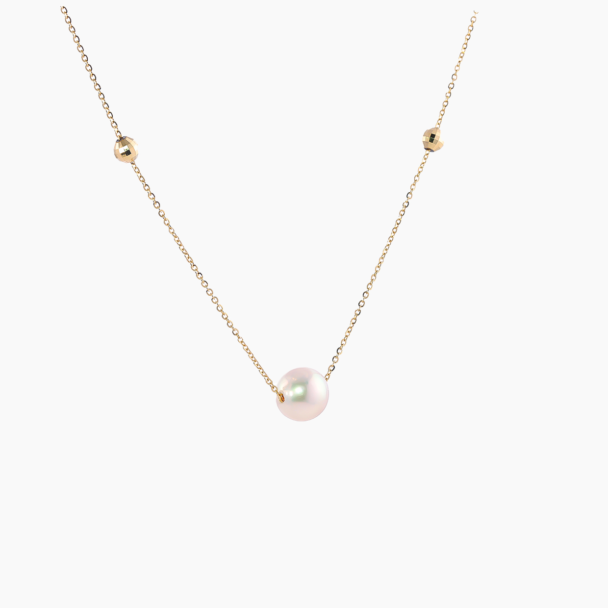 K18サンゴパールネックレス サンゴパールネックレス 約8.5mmのパールは真珠の核に天然の珊瑚を使用し幾重にも包み重なる真珠層が新たなる色味を感じるパールです。このパールをK18ネックレスに通し両側には各2つのシリコン入りミラーボールを入れお好きな所にミラーボールを移動できるネックレスになっています。パールの柔らかな光沢とイエローゴールドのキラキラ感とのハーモニーが胸元をエレガントに魅せるペンダントです。 K18サンゴパールネックレス K18 パール:8.5-9.0mm 品番:116569 価格:¥165,000(税込) こちらを下見する 商品一覧へ
