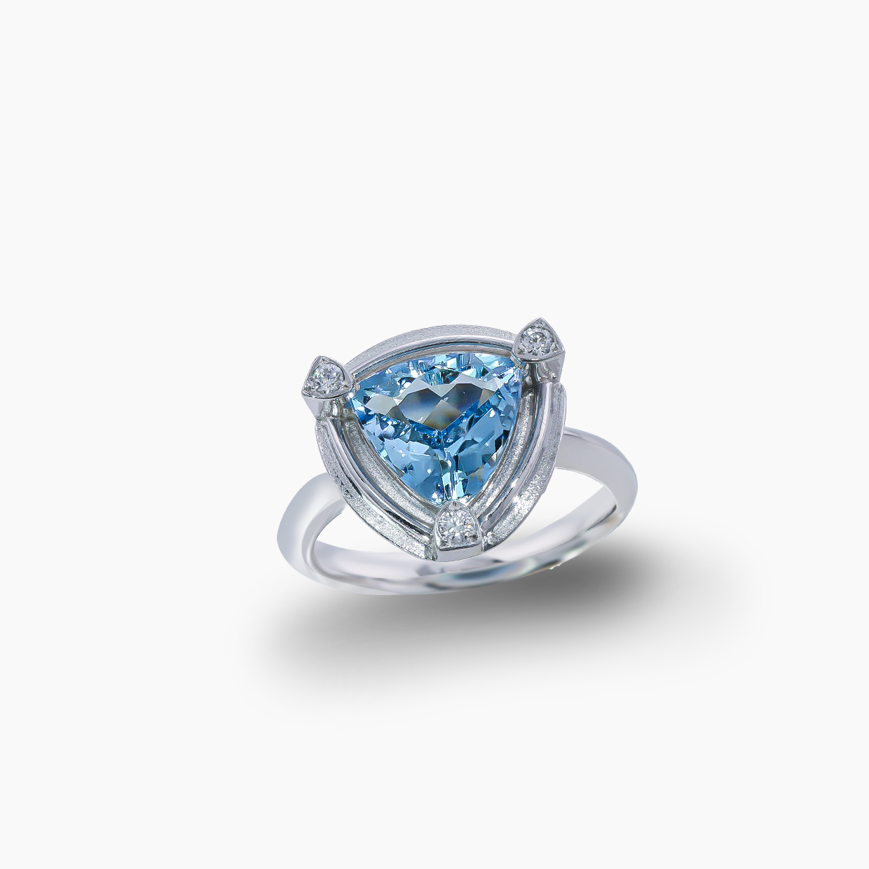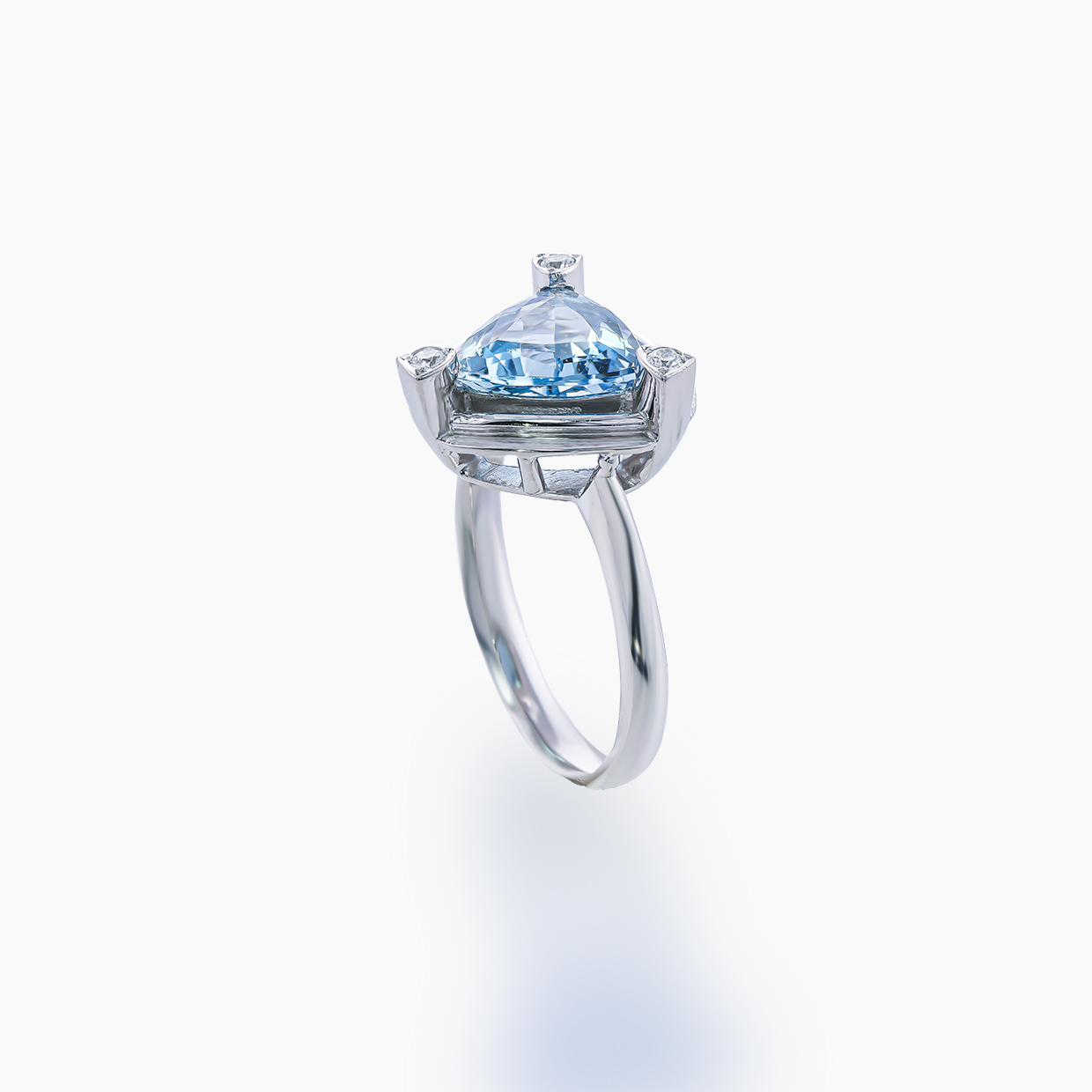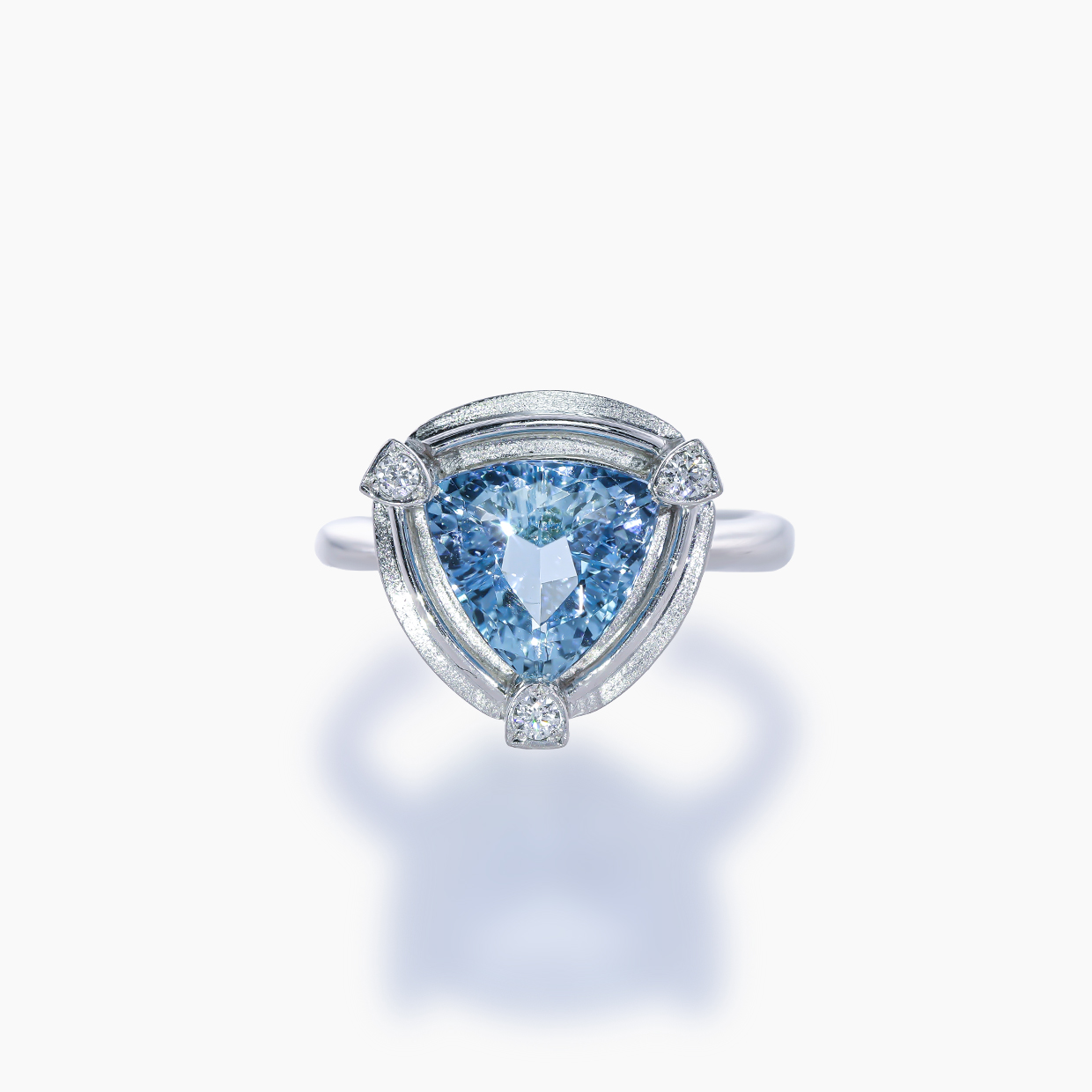 PTアクアマリンリング トリリアントカットのアクアマリン ラテン語の「海水」を語源とするアクアマリン。まるで南国の海の様に美しく透き通った青が特徴です。スタイリッシュなトリリアントカットのアクアマリンを思う存分にお楽しみいただける様、シンプルなデザインにお仕立てしました。性別問わずご愛用できます。ぜひお手元でお楽しみください。 PTアクアマリンリング PT アクアマリン:2.203ct ダイヤモンド:0.07ct 品番:111441 価格:¥330,000(税込) こちらを下見する 商品一覧へ