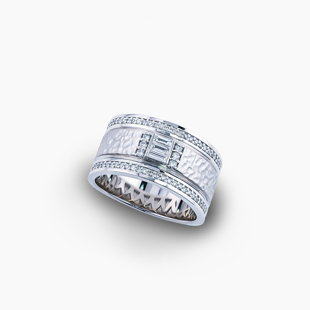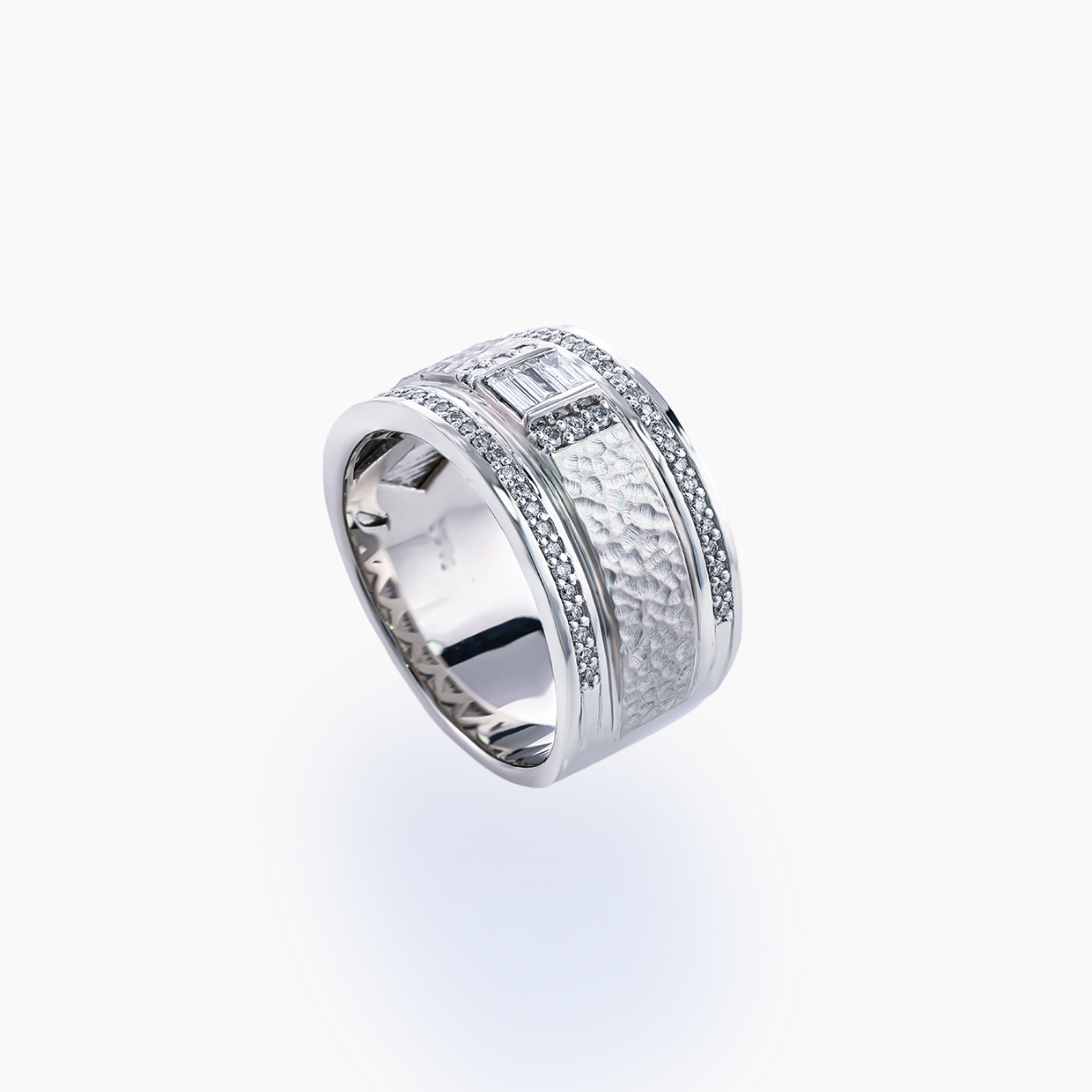 大人の品格 -プラチナ製槌目(つちめ)仕上げ ラグジュアリーダイヤモンドリング-