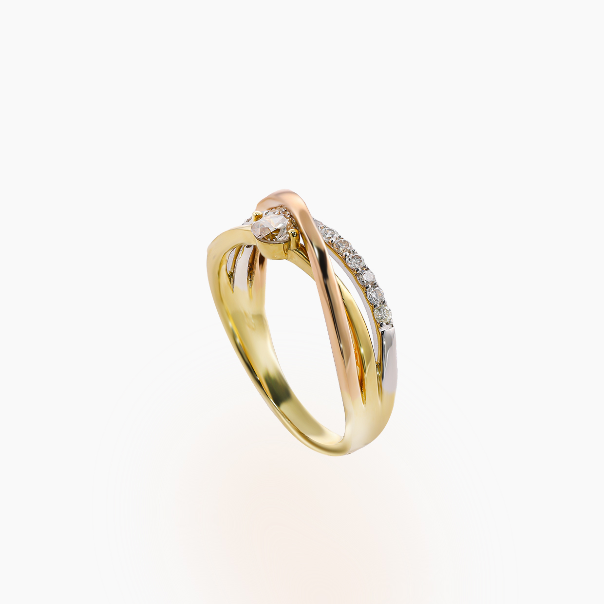 K18/PTダイヤモンドリング ロンド(輪舞) イエローゴールド、ピンクゴールド、そしてプラチナにダイヤモンドを石留めしたスリーカラーリング。すっきりとしたラインが描く絶妙な曲線を立体的に魅せる事で中央のダイヤモンドを引き立たせます。カジュアルなお洋服とのコーディネートにも悩まず着けられるこのリングは若い方からも“可愛い”と評判です。 K18/PTダイヤモンドリング K18/PT ダイヤモンド:0.32ct 品番:115649 価格:¥187,000(税込) こちらを下見する 商品一覧へ