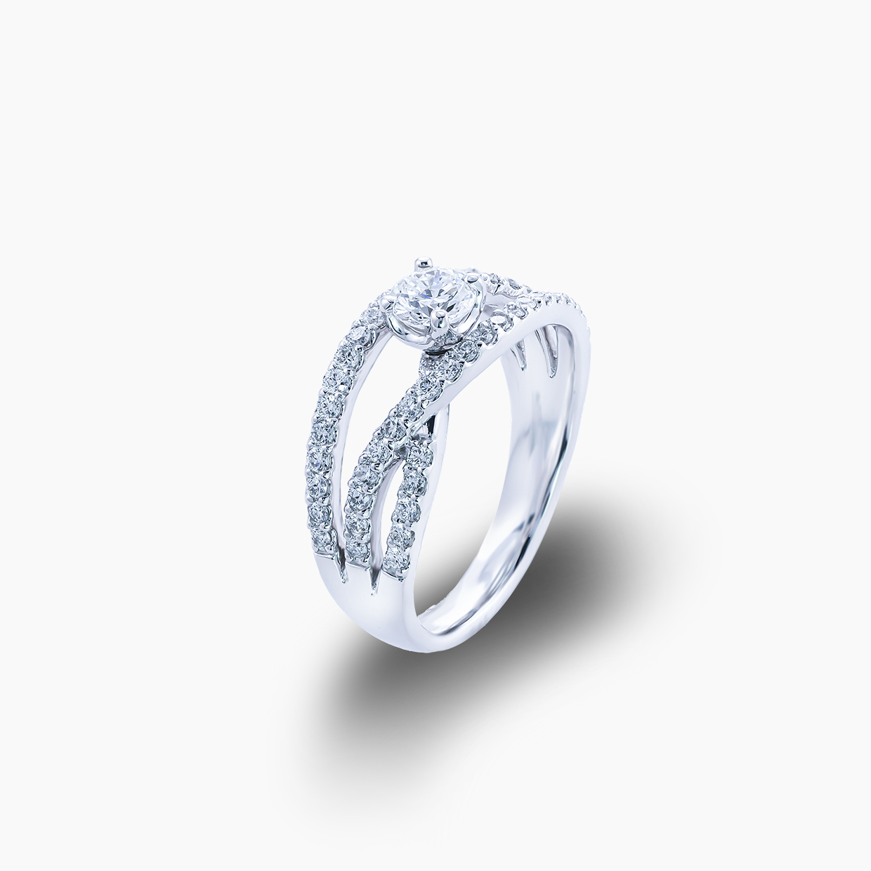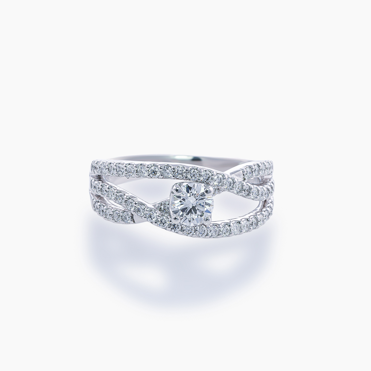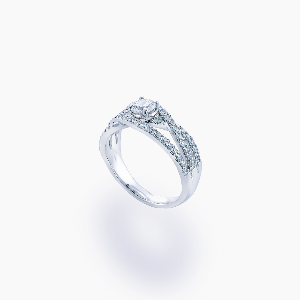 このエレガントなリングは、純粋で永続的な輝きを放つプラチナを贅沢に使用した、クロスオーバーデザインのジュエリーです。リング最大の特徴は、2本の繊細なラインが優美に交差する立体的なアーム構造。指元に流れるような動きを生み出し、上品な存在感を演出します。中央には、Dカラー・VS2・GOOD カットグレードの0.361ct ダイヤモンドをセッティング。無色透明ならではの凛とした輝きが、指先を明るく照らします。さらにアーム全体には、合計0.52ctのメレダイヤモンドを敷き詰め、センターストーンとの調和によってトータル約0.88ctの華やかな輝きを実現しました。格調高いデザインと確かな品質は、特別な瞬間を記憶に残す記念日の贈り物にも最適。高品質なプラチナとダイヤモンドが、身に着ける方の個性と美しさを一層引き立てる、「一生もの」のジュエリーです。