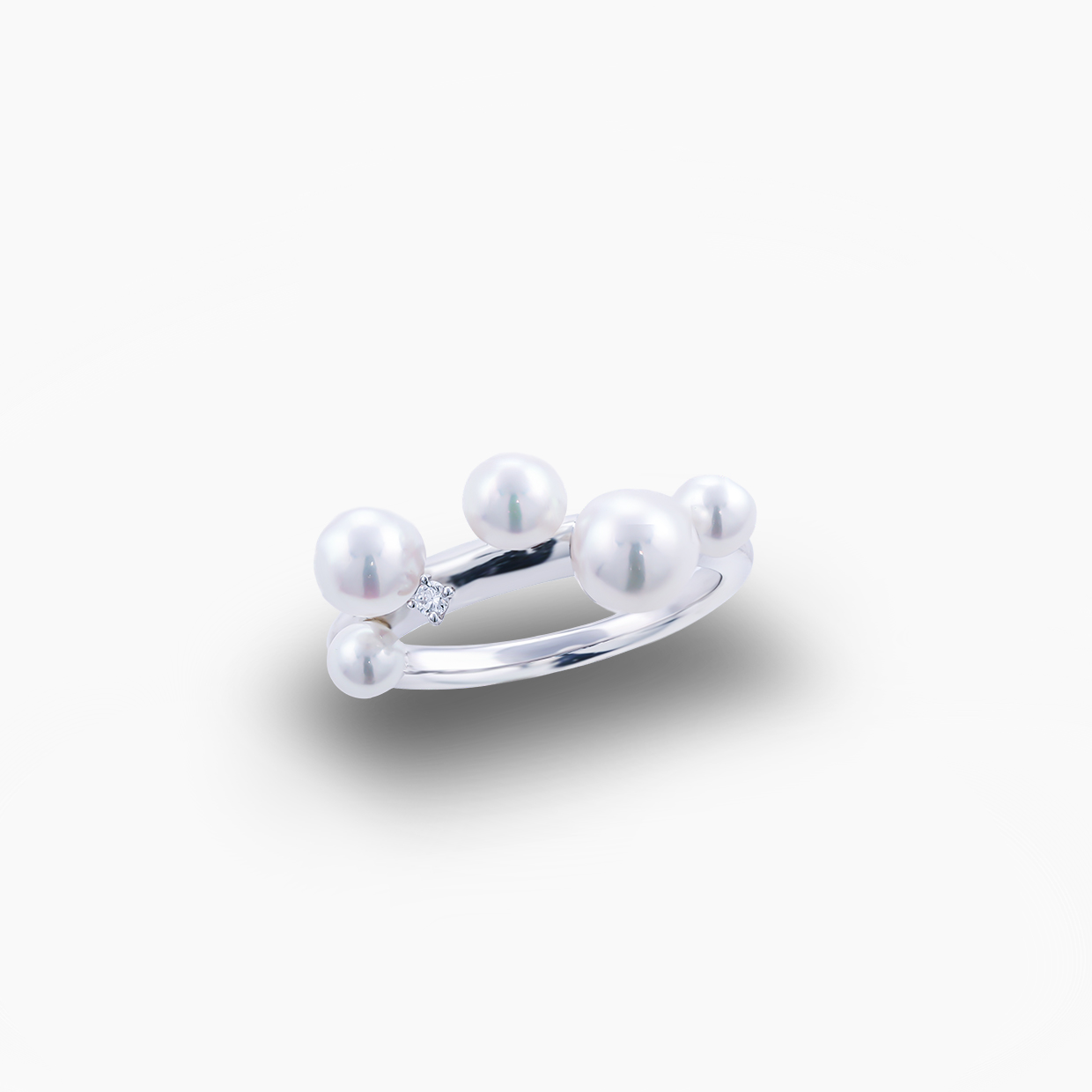 K18WGアコヤパールリング Freedomなアコヤパールリング ランダムに配置された優しく上品な色合いの5つのアコヤパールは、3.5mmから5.0mmを使用しております。大きさ違いで自由な配置のパールが現代的で新たしい世界観を作り出し、さり気ない個性的なデザインがあなたの手元を優婉に魅せてくれます。 K18WGアコヤパールリング K18WG アコヤパール:3.5mm-5.0mm 品番:113725 価格:¥248,000(税込) こちらを下見する 商品一覧へ