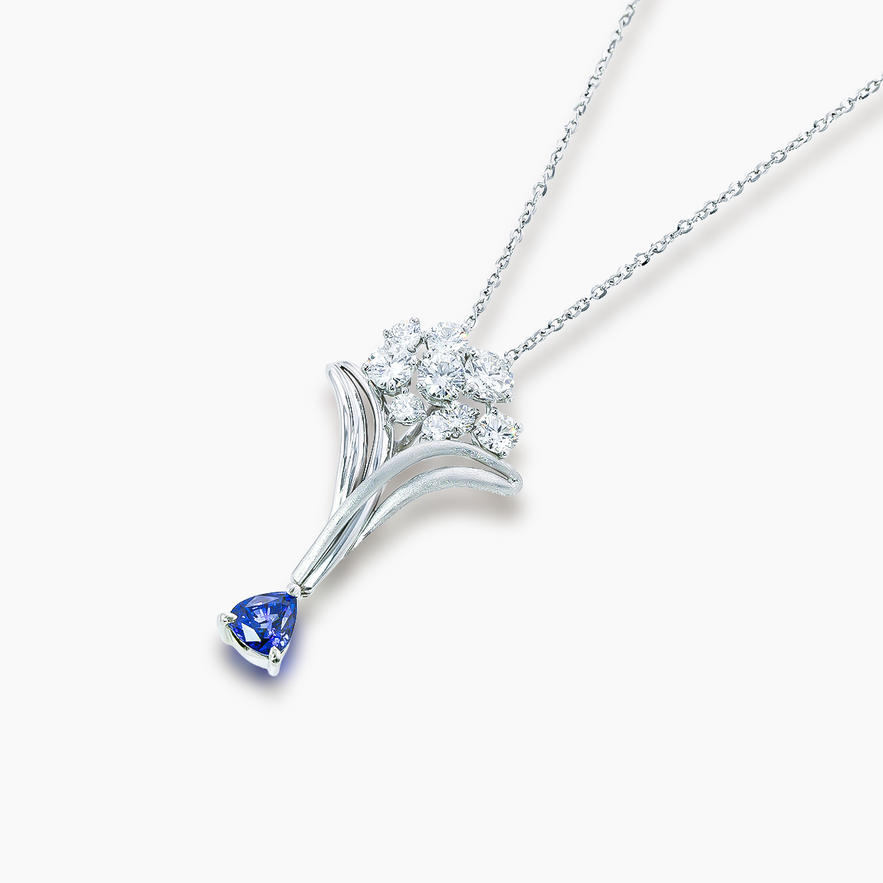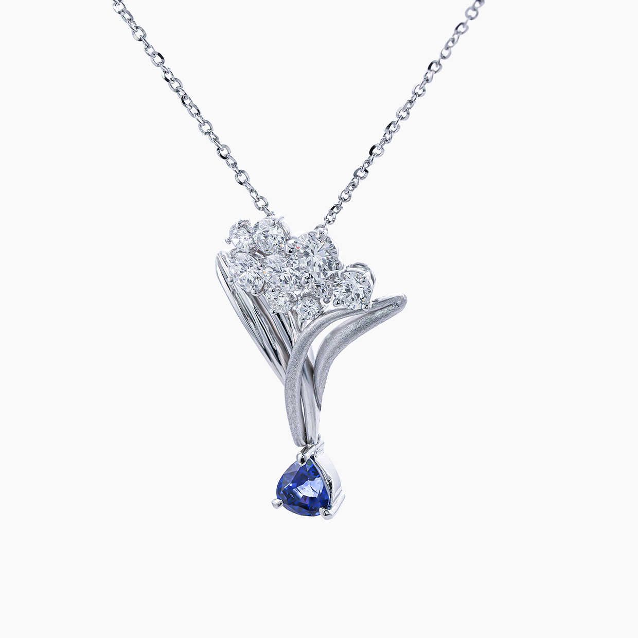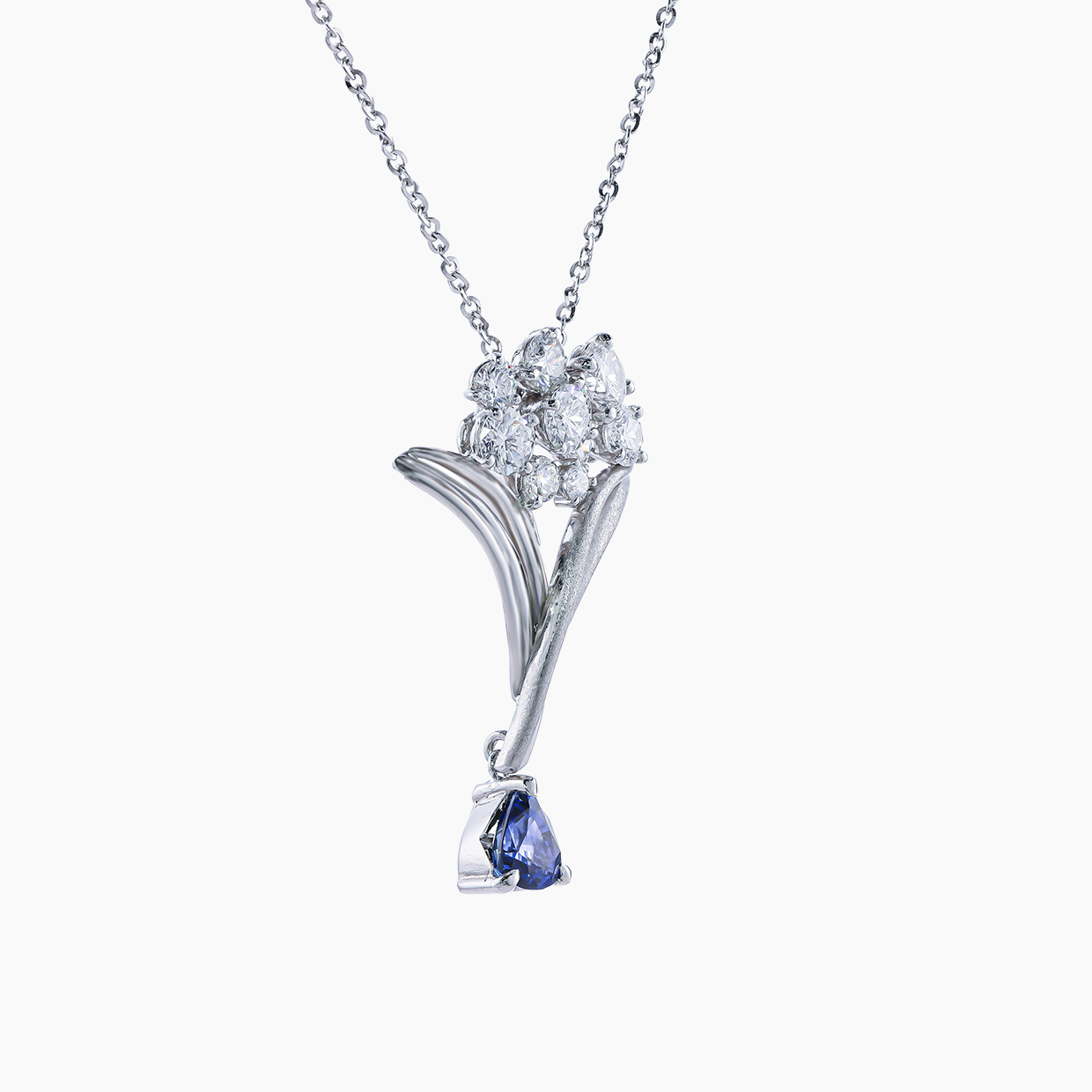 ブルーの煌めきを秘めるダイヤモンドの花束― ブルーサファイアペンダント